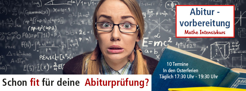 Erfolgreich das Abitur bestehen...In wenigen Wochen ist es so weit, deine Abiturprüfung steht an!Egal, ob Panik oder Feinschliff, wir helfen dir!Mehr SicherheitIn unseren Lerngruppen von max. 5 Teilnehmern greifen wir, anhand von originalen Abituraufgaben, den relevanten Abiturstoff auf und gehen dabei auf deine Wünsche und Rückfragen ein.Um deinem Anspruch gerecht zu werden, bieten wir zwei Kurse mit unterschiedlichen Schwerpunkten an: